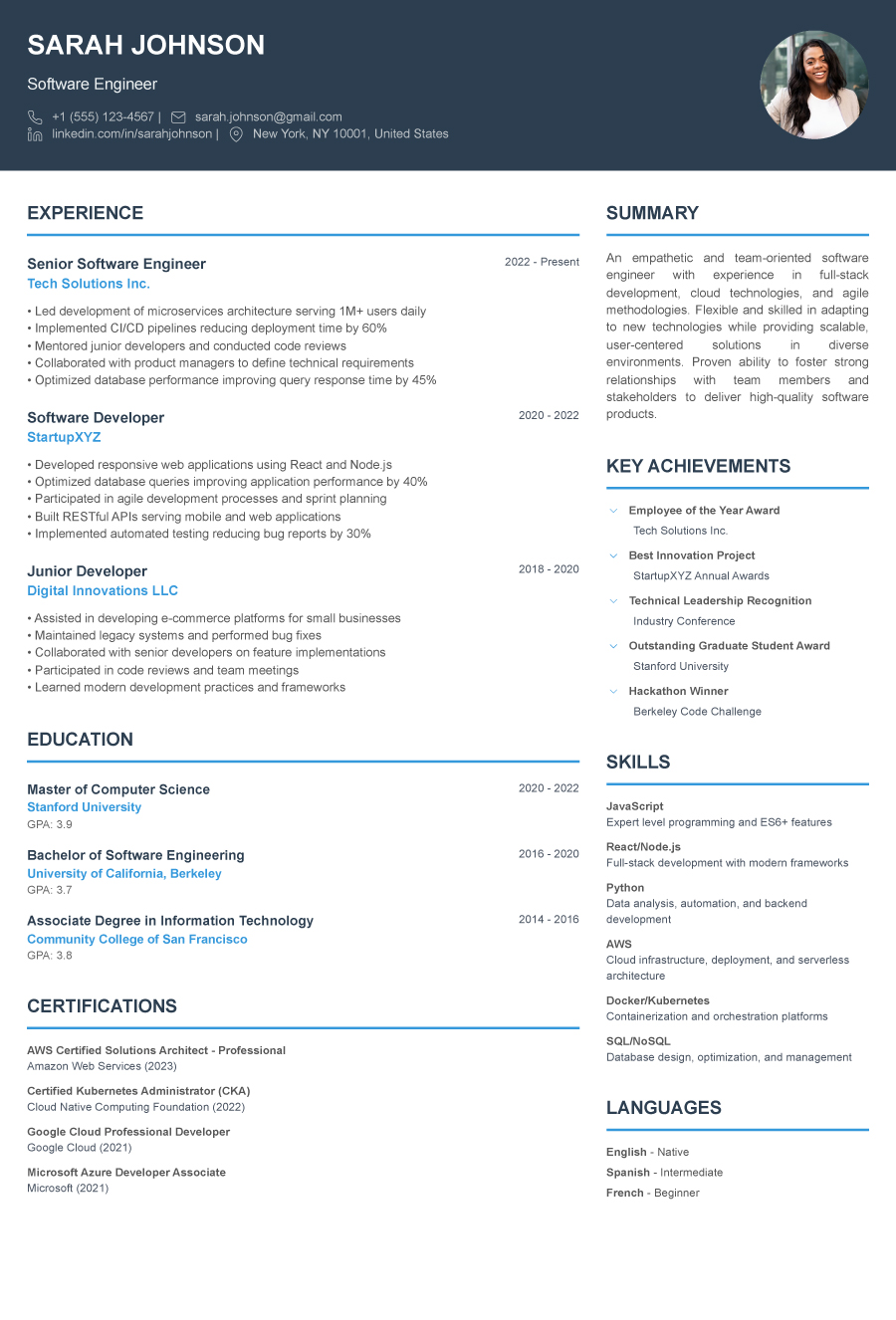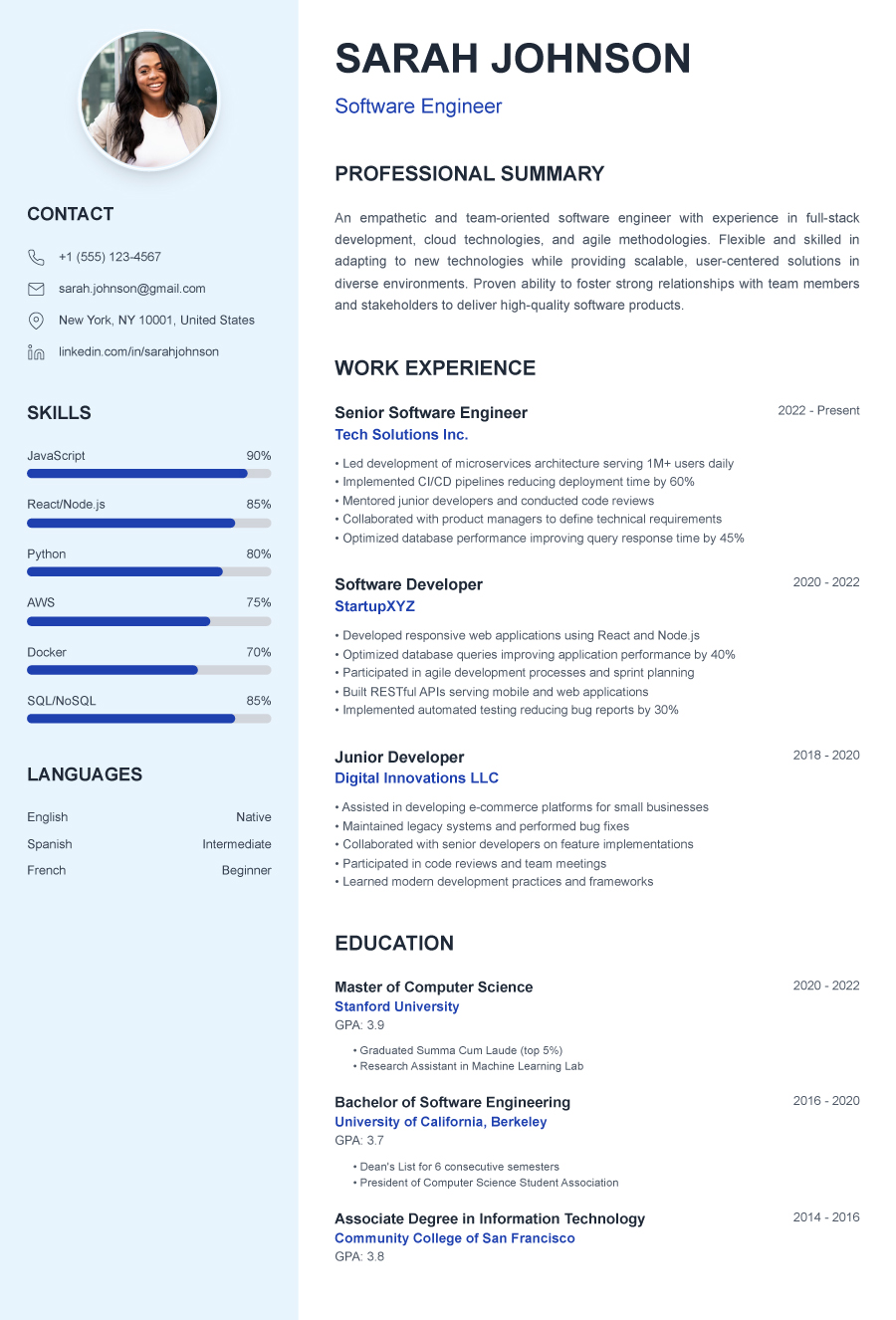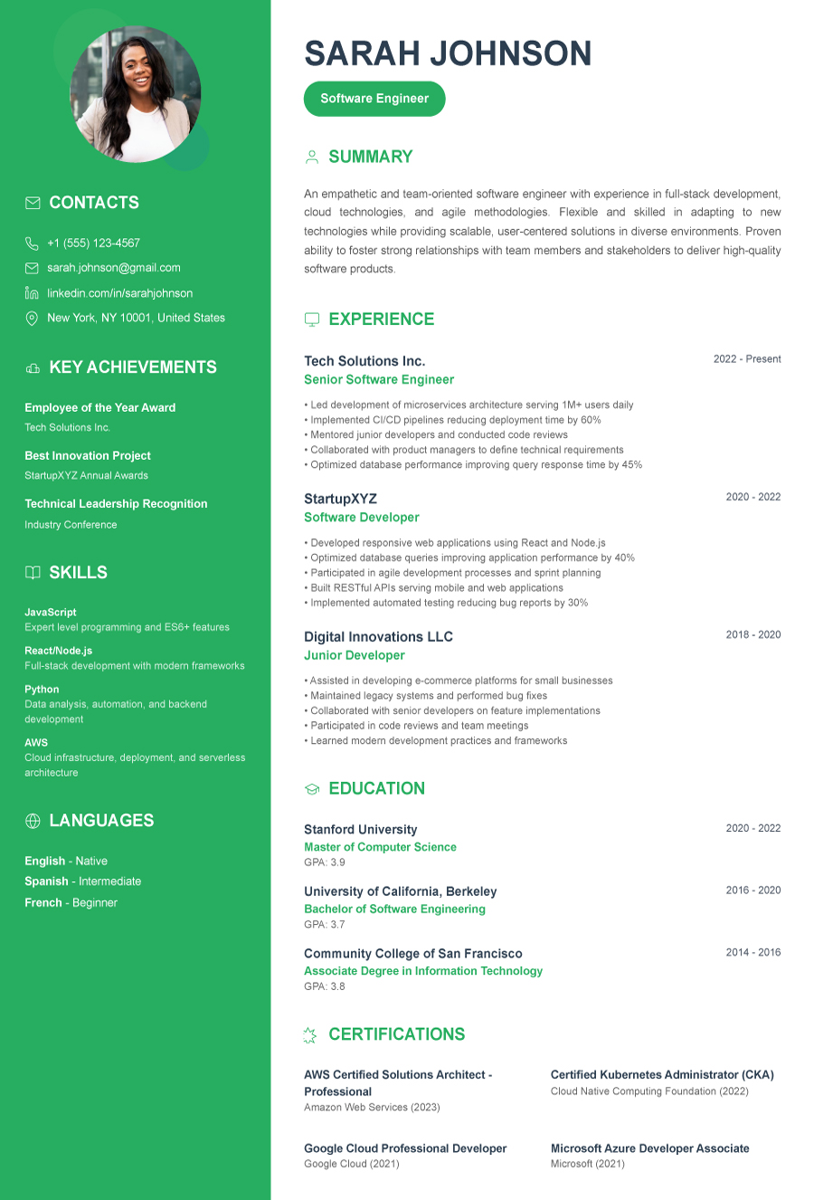 Iwe wewe ni mgeni, mbunifu, mtendaji, au unabadilisha taaluma - tunayo muundo kwa ajili yako. Mifumo yote inakubaliana na mfumo wa ATS na inaweza kubadilishwa kulingana na mtindo wako kwa kutumia Mjenzi wetu wa CV wa AI.